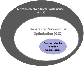 Les travaux récents de Kim abordent les MINLP avec des fonctions objectif à rendements décroissants, soit une large collection de fonctions appelées fonctions sous modulaires généralisées. La sous modularité généralisée se retrouve dans des applications caractérisées par l'aversion au risque, les économies d'échelle, le regroupement, la couverture et la propagation de l'influence. Kim examine les structures des ensembles d'entiers mixtes qui découlent de l'optimisation sous modulaire généralisée. La théorie polyédrale qui en résulte conduit à des méthodes de solutions exactes, qui démontrent leur efficacité et leur polyvalence dans des expériences avec des ensembles de données réelles.
