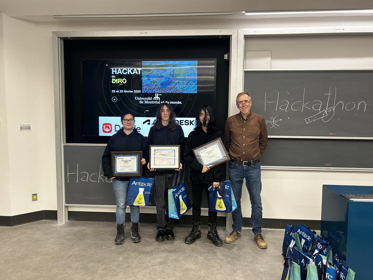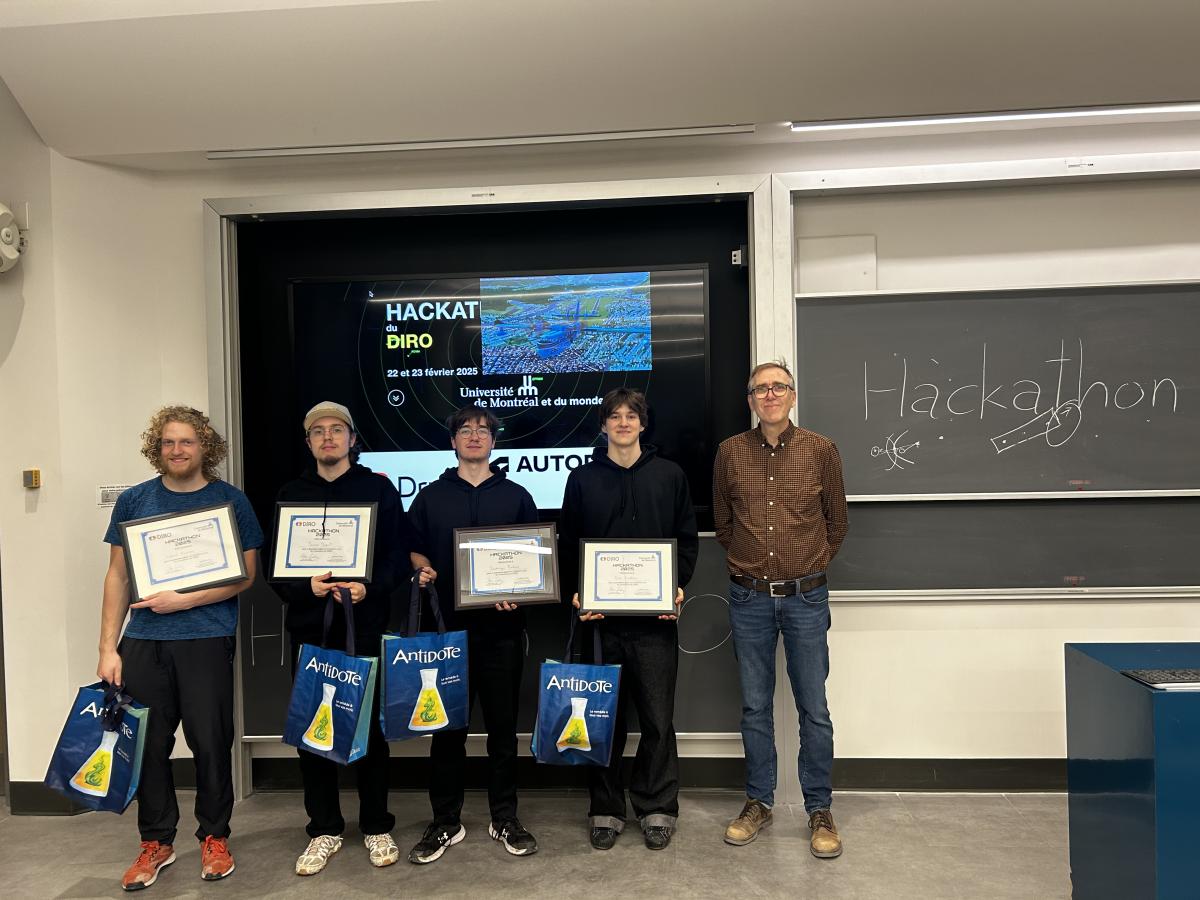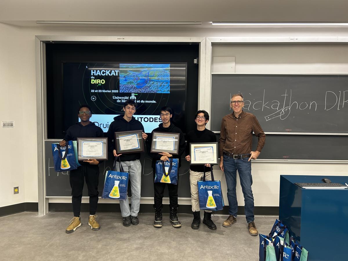 L'édition 2025 du Hackathon du DIRO s'est tenue les 22 et 23 février au Pavillon André-Aisenstadt, réunissant sept équipes d’étudiants collégiaux issus des cégeps Maisonneuve, Gérald-Godin, Grasset, Bois-de-Boulogne, Dawson et Montmorency.